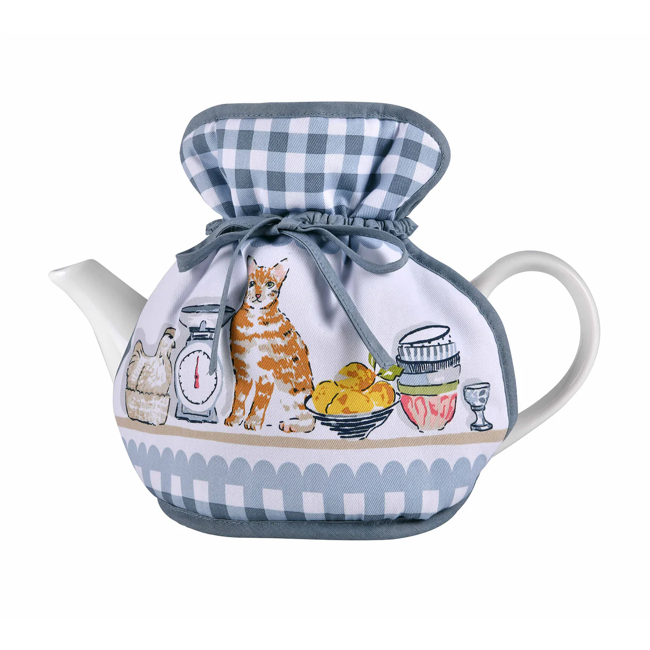 Laissez-vous emporter vers une cuisine champêtre pleine de nostalgie avec le cache-théière “Pantry Cats” d’Ulster Weavers. Inspiré d’un garde-manger traditionnel de cottage anglais, ce design présente un mélange ludique de chats se faufilant entre la vaisselle, accompagnés d’illustrations à l’aquarelle d’ustensiles de cuisine, de céramiques et de trouvailles vintage. Les bordures à carreaux et à fleurs ajoutent la touche finale parfaite dans un style cottagecore. Ce n’est pas seulement un cache-théière : c’est une œuvre d’art douillette qui apporte chaleur, style et personnalité à votre moment thé.